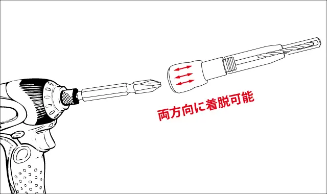 - 内錐が内蔵されていますので、ガイド部分を外すと鉄工ドリルとしてお使いいただけます
