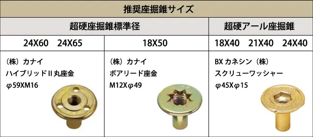 - Q2座金にあう座掘錐の種類やサイズがわかりません