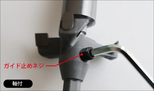 ②付属の六角レンチでガイド止めネジを緩め、外します。