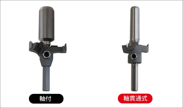 - カッターの「軸貫通式タイプ」と「軸付タイプ」がわかりにくい?下図をご覧ください。ガイドやドリルとの組み合わせにご注意ください。