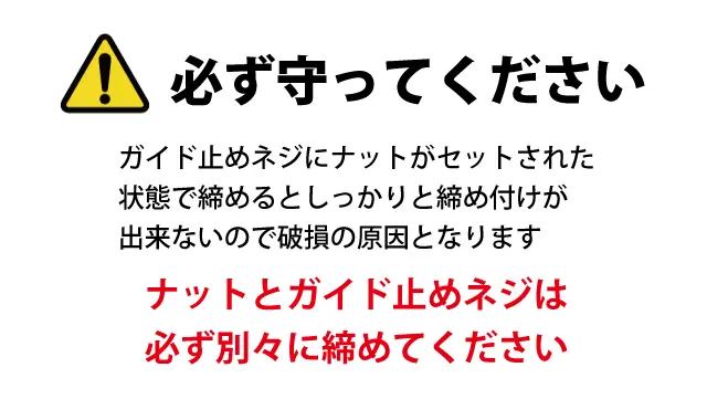 ⑤付属の六角レンチでガイド止めネジを平取面・くぼみでしっかりと締めます。
